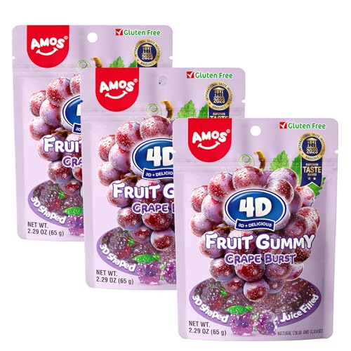 Para consultar el precio del producto AMOS 4D Gomitas de fruta con ráfaga de uva, gomitas rellenas de gelatina de uva para decoración de cupcakes, caramelos sin grasa y sin gluten, 2.29 oz por bolsa (paquete de 3), simplemente haz clic en el botón que se encuentra a continuación. ¡Descubre el precio ahora mismo!