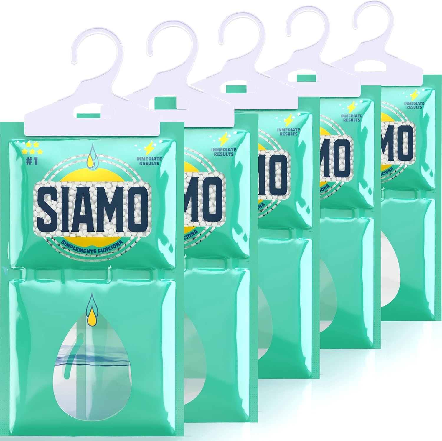 El pack x 5 bolsas antihumedad deshumidificador percha colgante es una solución eficaz 🔍 y segura 🔒 para controlar la humedad en armarios, garajes, trasteros y autocaravanas. Cada bolsa utiliza cristales de cloruro de calcio esférico ⚗️ para absorber más humedad en menos tiempo, ofreciendo un rendimiento de hasta 50% superior 🚀 a otras marcas.